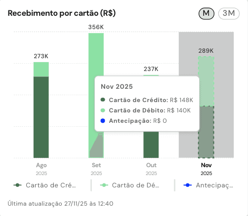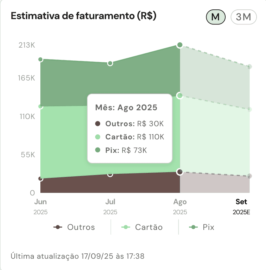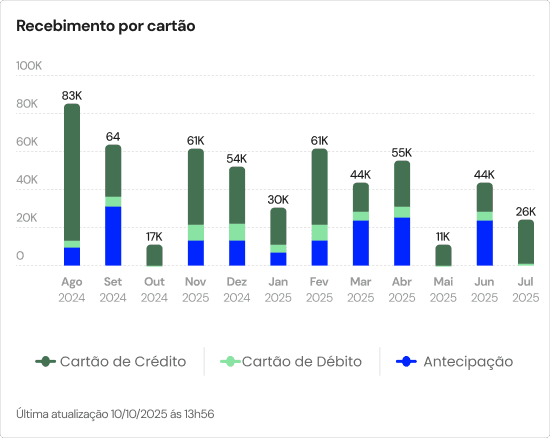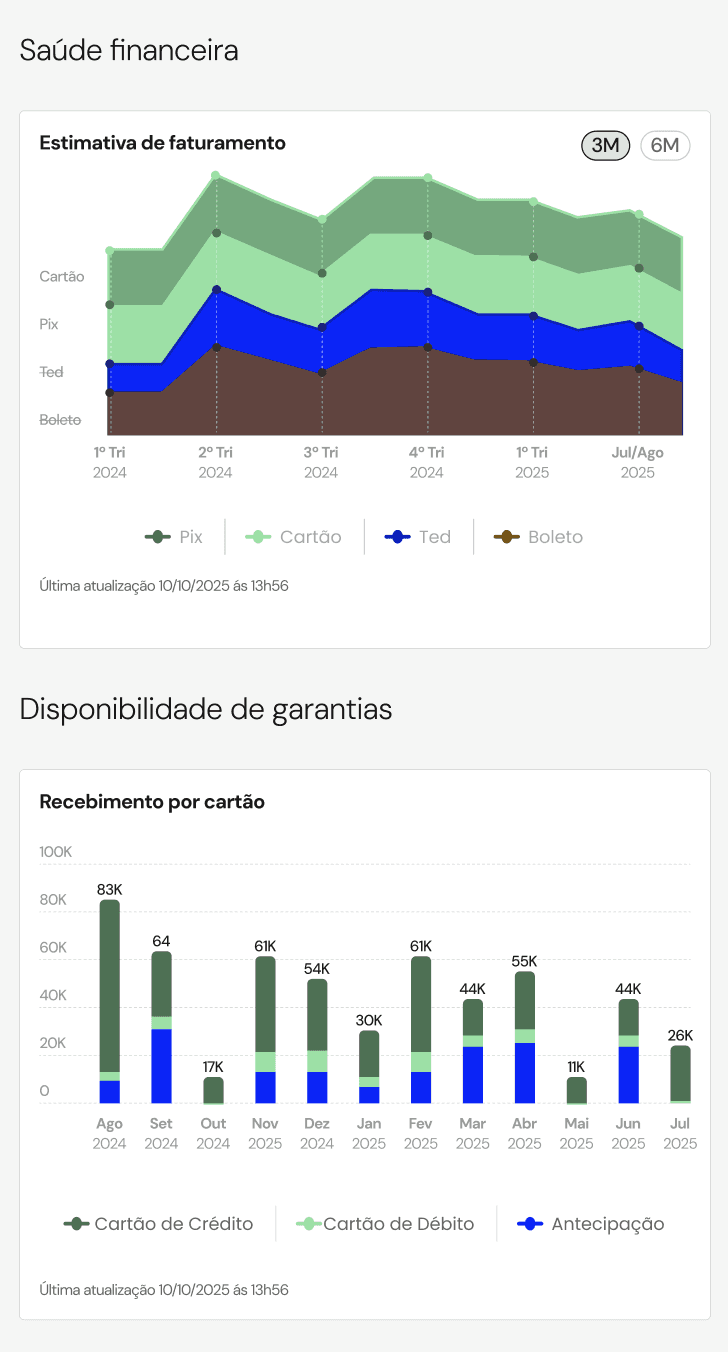 Analisamos os recebíveis futuros das vendas em cartão para saber se o cliente tem garantias suficientes. Com isso, você toma decisões mais seguras sobre aprovar crédito e definir limites.