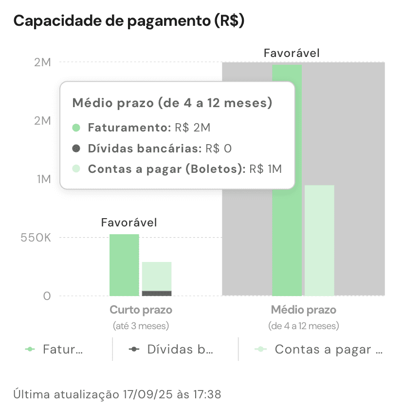 Avaliar a composição do faturamento, a disponibilidade de recebíveis e o desempenho frente ao setor ajuda você a identificar oportunidades, calibrar condições de crédito e fortalecer sua estratégia de cobrança.