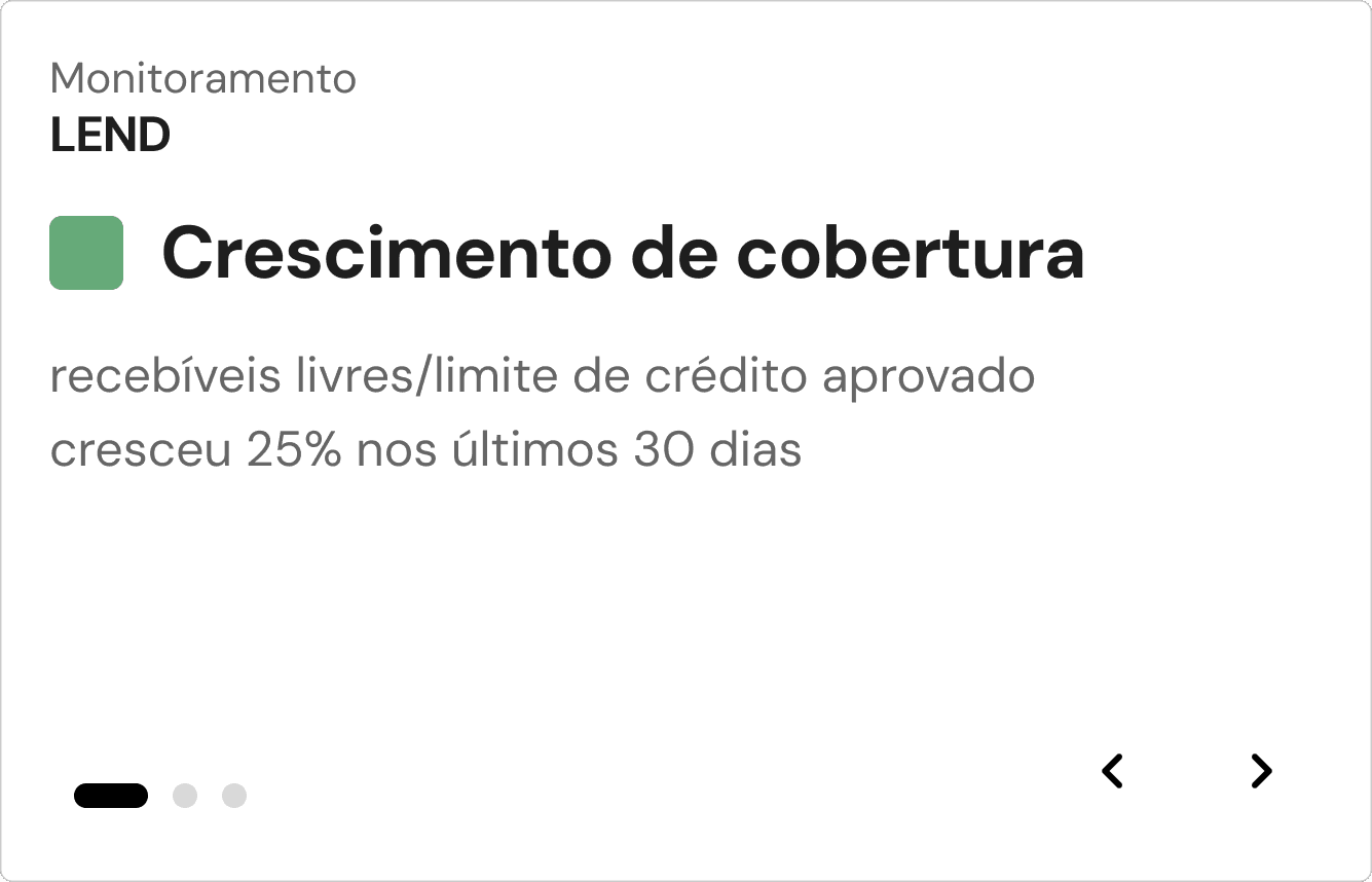 Se algo mudar no comportamento financeiro do cliente, você é avisado na hora. Assim, pode ajustar limites ou rever condições antes que o problema vire prejuízo.