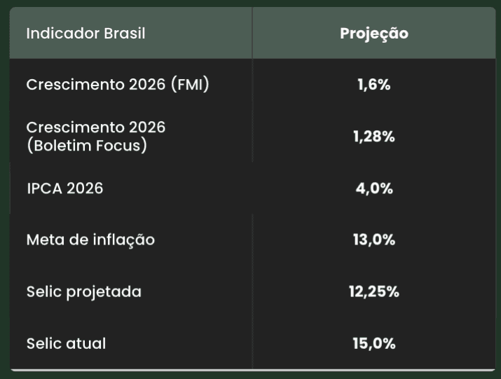 O Brasil enfrenta um cenário de velocidade controlada. Enquanto o FMI prevê crescimento de: